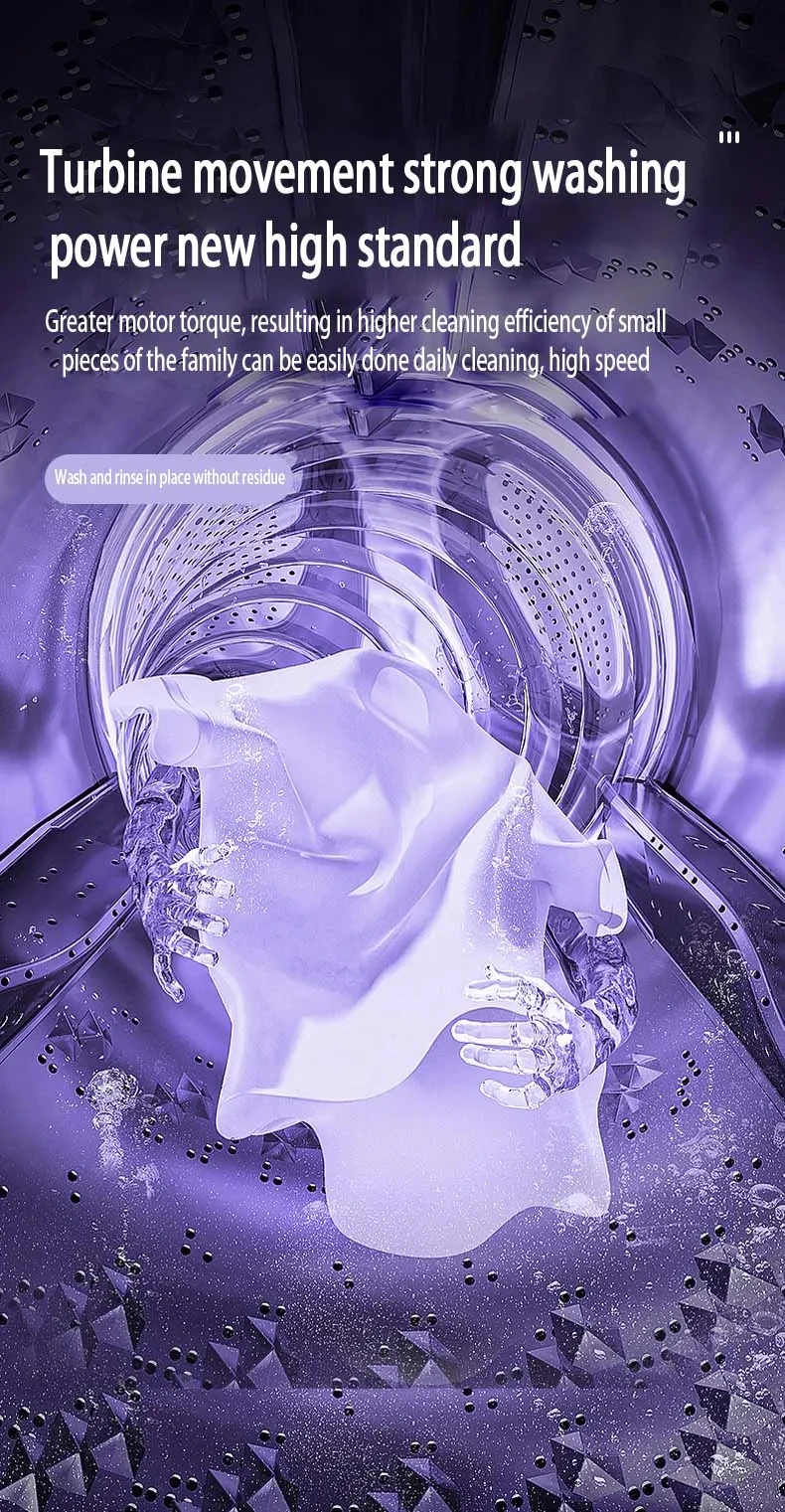 Features | 1.Wash and drain in one, exclusive drain basket, gentle clothing, used with the drain program, gently separate the residual moisture of the clothes to avoid violent dehydration causing the clothes to be pulled and deformed 2.Intelligent three-gear timing to meet your different needs, three-gear time adjustment, choose according to the degree of laundry 3.The positive and negative pulsator imitates hand washing, 360° deep soft washing does not hurt the clothes, the imitation hand washing pulsator cooperates with the precise washing speed to simulate the beating, rubbing and shaking during the hand washing process, strong stain removal and gentle turning of the clothes, clean and not hurt the clothes , cleaner than hand washing 4.The folding design does not take up space, and it can be easily stored in the living room, balcony, and laundry room with a single press. 5.With blue light Auto Disinfect